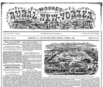 The International Magazine (Volume IV, November 1, 1851, No. IV) published an article authored by Horace Greeley with a description of the 1851 N.Y.S. Agricultural Society Fair. The three surrounding illustrations were attached . The article opens with the comment: