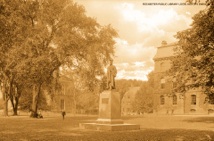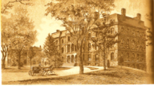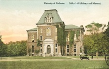 “For nearly fourteen years Anderson Hall stood alone. Under its roof was housed all that there was of the University of Rochester. It contained classrooms, laboratories, chapel and library. Hiram Sibley, (Western Union Telegraph Co.), made a generous donation of a much needed library building,... opened in 1877.”